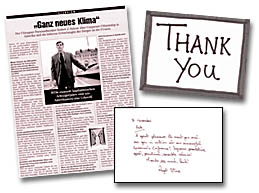We receive cards and letters from many people who hire us and attend our sessions.
